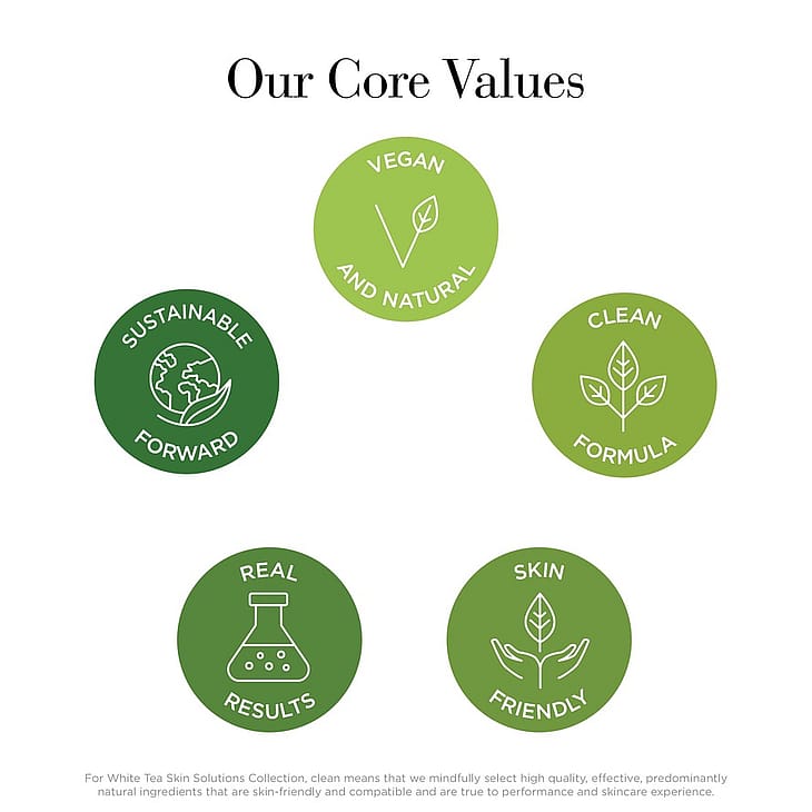 Elizabeth Arden White Tea Skin Solutions on vegaaninen ihonhoitotuotesarja, jossa on käytetty valkoisen teen sisältämää luonnon omaa tehoantioksidanttia EGCG:tä. Se antaa iholle nuorekasta elinvoimaa ja vahvistaa vastustuskykyä. Sarjan jokaisen tuotteen biotekninen EGCG-koostumus on huolella suunniteltu vahvistamaan ihon luontaista kollageenia jo 6 tunnissa. Anna puhtaiden koostumusten helliä aistejasi. Ainesosat ja pakkaukset on kehitetty kestävän kehityksen mukaisesti. Hellävaraista ihonhoitoa, joka sopii kaikille – myös herkälle iholle.