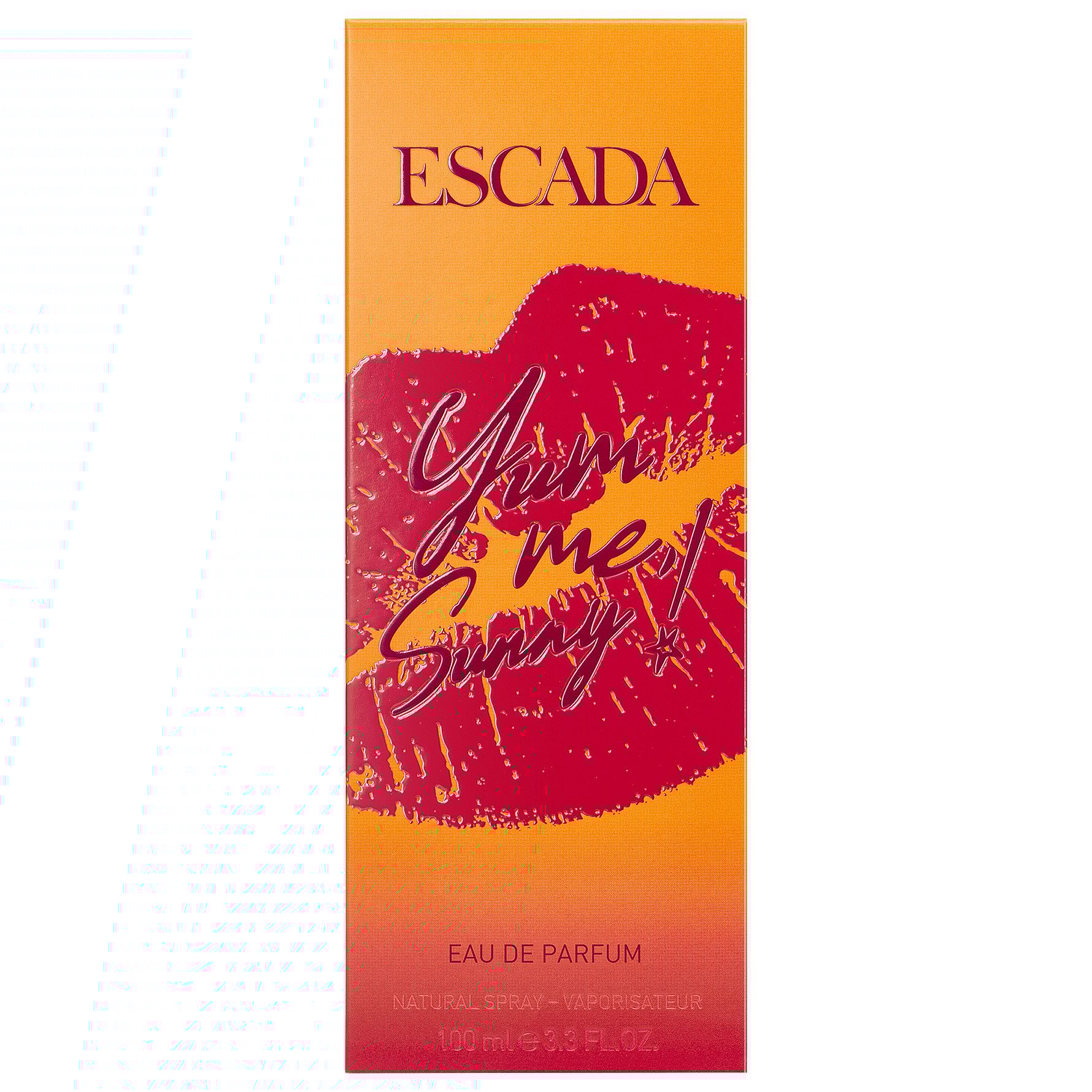 Escada Yum Me Sunny Eau de Parfum on värikäs ja viettelevä tuoksu, joka kutsuu sinut trooppiseen fantasiaan. Gourmand-sävellys, joka säteilee energiaa ja sensuellia lämpöä – luotu täydelliseksi kesäparfyymiksi. Tuoksu avautuu raikkaalla ja trooppisella passionhedelmällä. Sydämessä kukkii ylang-ylang, jonka elegantti ja sensuelli luonne tuo naisellista viehätystä. Pohjalla kookosmaito viimeistelee tuoksun pehmeällä lämmöllä, joka viipyy iholla. Pullo kimaltelee keltaisen, oranssin ja punaisen sävyissä – kuin hehkuva auringonnousu – ja sitä koristaa kultainen korkki, joka heijastaa tuoksun lämpöä, optimismia ja glamouria.