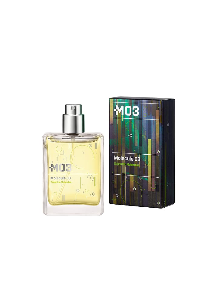 Molecule 03 -tuoksu on radikaalisti minimalistinen. Se ei sisällä muita hajusteita kuin aromimolekyylin, vetiveryyliasetaatin. Ne asiakkaat, jotka pitävät Molecule-tuoksuja liian hienovaraisina, voivat kokeilla Escentric-tuoksuja, joiden tuoksu on aina voimakkaampi.