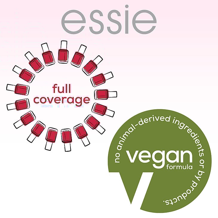 Essie Color alkuperäiset, ikoniset ja palkitut kynsilakat hipovat täydellisyyttä. Essie haluaa tuoda kaikille lisää väriä elämään ja tarjoaa lukemattoman laajan paletin sekä ikonisia klassikoita että trendikkäitä sävyjä. Värikylläiset ja pitkäkestoiset Essie Color kynsilakat antavat kynsille kiiltävän ja hohtavan pinnan. Kynsilakat ovat peittäviä ja helposti kerrostettavia. Alus- ja päällyslakan käyttö antaa lakalle ainutlaatuisen keston. Kaikenlaisille kynsille sopivat siveltimet takaavat helpon ja raidattoman levityksen. Vegaaninen koostumus, ei sisällä eläinperäisiä ainesosia tai sivutuotteita.
