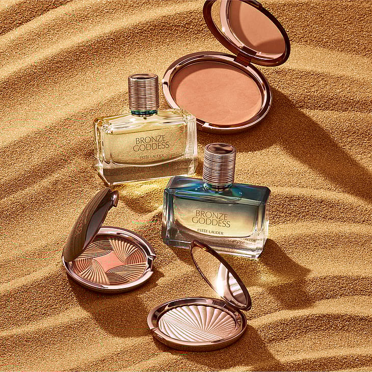 Auringonnoususta auringonlaskuun kuumuus on läsnä. Bronze Goddess Eau Fraîche on päiväsi hehku. Bronze Goddess Nuit valaisee yön.