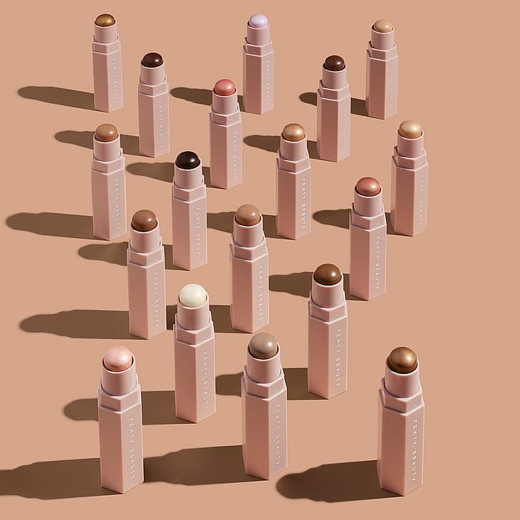 Fenty Facen toinen vaihe on korostus. Match Stix -tuotteet on täydelliset kerrostamiseen: levitä Shimme-korostuspuikkoa kasvoille ja häivytä sormin tai siveltimellä.