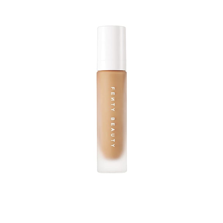 Parhaimman lopputuloksen saamiseksi valmistele iho Fenty Skin Hydra Vizor SPF 30 kosteusvoiteella ja Pro Filtr Instant Retouch Primerilla ennen meikivoiteen levitystä. Sekoita hyvin väripigmenttien aktivoimiseksi. Täyden peittävyyden meikkiin pumppaa 1-2 kertaa kämmenselälle. Taputtele tuotetta Full-Bodied 110 meikkivodesiveltimellä keskelle kasvoja ja häivytä ulospäin. Keskipeittävään meikkiin pumppaa 1 kerta kämmenselälle. Painele tuotetta kostealla Precision 100 meikkisienellä kohtiin joihin haluat peittävyyttä ja häivytä ulospäin. Rihannan vinkki: Äärimmäiseen huokosten peittämiseen painele tuotetta Full-Bodied 110 meikkivodesiveltimellä ihoon, häivytä painellen ja toista.