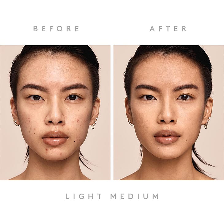 Parhaimman lopputuloksen saamiseksi valmistele iho Fenty Skin Hydra Vizor SPF 30 kosteusvoiteella ja Pro Filtr Instant Retouch Primerilla ennen meikivoiteen levitystä. Sekoita hyvin väripigmenttien aktivoimiseksi. Täyden peittävyyden meikkiin pumppaa 1-2 kertaa kämmenselälle. Taputtele tuotetta Full-Bodied 110 meikkivodesiveltimellä keskelle kasvoja ja häivytä ulospäin. Keskipeittävään meikkiin pumppaa 1 kerta kämmenselälle. Painele tuotetta kostealla Precision 100 meikkisienellä kohtiin joihin haluat peittävyyttä ja häivytä ulospäin. Rihannan vinkki: Äärimmäiseen huokosten peittämiseen painele tuotetta