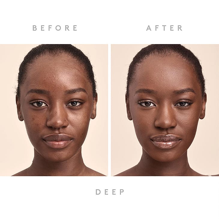 Parhaimman lopputuloksen saamiseksi valmistele iho Fenty Skin Hydra Vizor SPF 30 kosteusvoiteella ja Pro Filtr Instant Retouch Primerilla ennen meikivoiteen levitystä. Sekoita hyvin väripigmenttien aktivoimiseksi. Täyden peittävyyden meikkiin pumppaa 1-2 kertaa kämmenselälle. Taputtele tuotetta Full-Bodied 110 meikkivodesiveltimellä keskelle kasvoja ja häivytä ulospäin. Keskipeittävään meikkiin pumppaa 1 kerta kämmenselälle. Painele tuotetta kostealla Precision 100 meikkisienellä kohtiin joihin haluat peittävyyttä ja häivytä ulospäin. Rihannan vinkki: Äärimmäiseen huokosten peittämiseen painele tuotetta