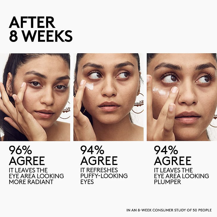 On aika taistella ihon kuivuutta ja tummia silmänalusia vastaan täyteläisellä do-it-all -silmänympärysvoiteella. Kosteuta, kirkasta ja vähennä silmänympärysalueen turvoitusta raaka-aineilla, jotka sisältävät peptidejä, kofeiinia ja vitamiineja. Vain viikossa hienot juonteet ja rypyt tasoittuvat. Vegaaninen.
