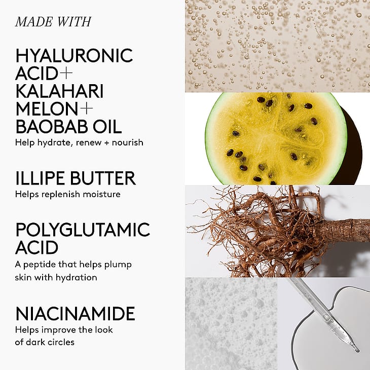 - Hyaluronihappo, Kalahari-meloni ja Baobab-öljy kosteuttaa ravitsee ja uudistaa