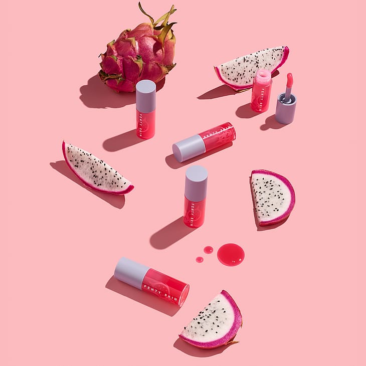 Fenty Skin Kalahari Melon Treat Hydrating + Strengtening Lip Oil on erittäin kosteuttava huuliöljy, joka lukitsee kosteuden ja pitää huulet pehmeinä. Kosteuta ja vahvista huuliasi kolmella eri kirsikkauutteella. Syväkosteuttaa huulet ja lukitsee kosteuden koko päiväksi. Hedelmäinen, melonin inspiroima tuoksu. Muhkea applikaattori vaivattomaan levitykseen.