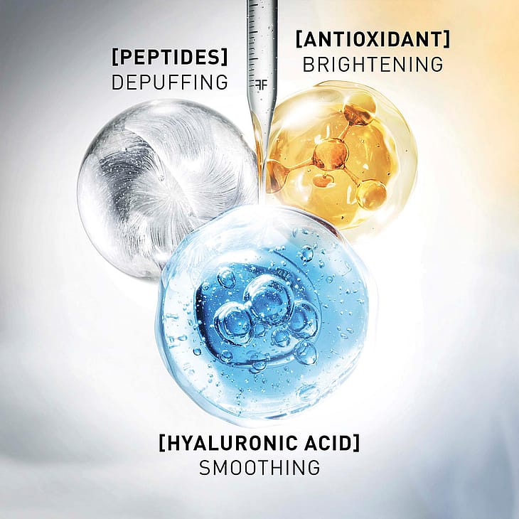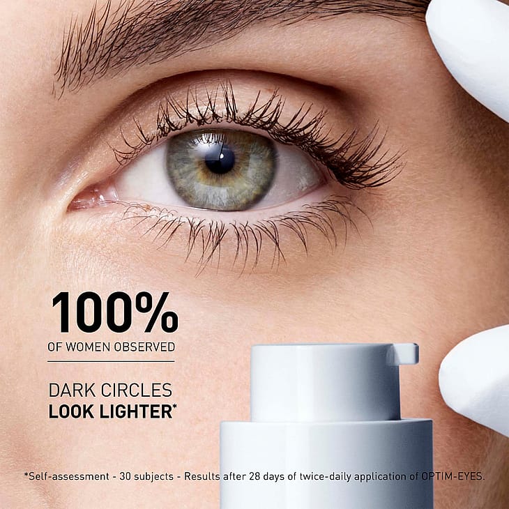 Kolmivaikutteinen silmänympärysvoide, joka vaikuttaa tehokkaasti tummiin silmänalusiin, näkyvään turvotukseen ja ryppyihin, jotka muuten saavat silmät näyttämään väsyneiltä.