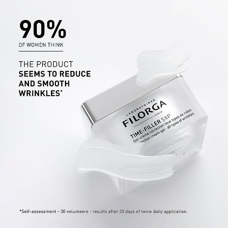 TIME-FILLER 5XP CREAM-GEL on intensiivinen ja monipuolisesti korjaava päivä- ja yövoide, joka silottaa tehokkaasti kaikentyyppisiä kasvojen ja kaulan ryppyjä. Voimakkaita aktiiviainesosia sisältävä koostumus pehmentää ilmeryppyjä, täyttää syviä ryppyjä sekä häivyttää pintaryppyjä ja kuivan ihon merkkejä tasoittaen samalla kaulan ihoa. Raikas geelikoostumus sisältää mattapinnan antavaa sinkkiä, joka sopii erityisesti seka- ja rasvoittuvalle iholle. TIME-FILLER 5XP CREAM-GEL sisältää kaiken FILORGAn esteettisen lääketieteen asiantuntemuksen. Sen tehokkuus on todistettu kliinisesti, ja tuote on testattu ihotautilääkärin valvonnassa.