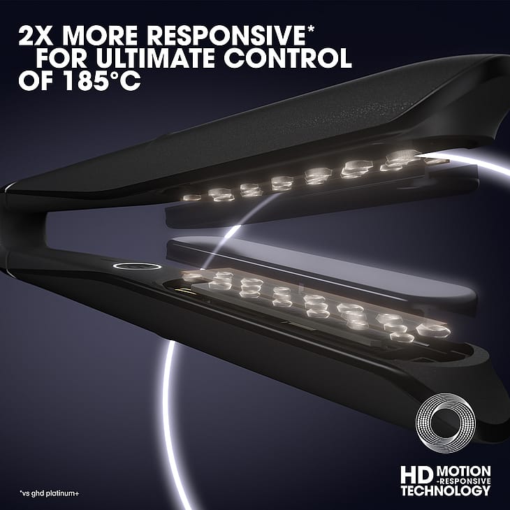 Esittelyssä ghd Chronos; ghd:n ammattimainen suoristusrauta, joka on 3x nopeampi* ja sisältää HD motion-responsive™ -teknologian. Saat 24 tuntia kestävät tulokset yhdellä vedolla**. Ghd:n edistynein muotoilurauta, joka sopii kaikille hiustyypeille.