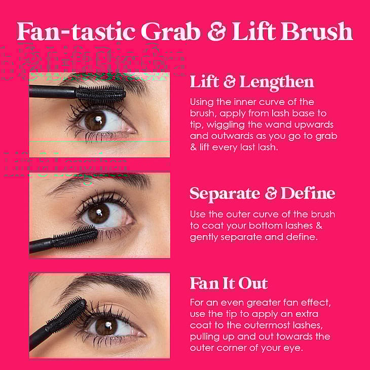Tämä upea ripsiväri antaa ripsille pituutta ja volyymia ilman, että se murenee tai paakkuuntuu. Gran-deFANATIC ravitsee avainainesosalla WidelashTM, biotiinipeptidi, joka auttaa kiinnittämään ne 1-2 ripseä, jotka luonnollisesti putoavat joka päivä. Koe terveemmät, vahvemmat ja tuuheammat ripset, joiden tulokset säilyvät pitkään, myös ripsivärin poispesun jälkeen! Kaareva harja, joka auttaa nostamaan, taivuttamaan ja antamaan ripsille volyymia, joka pysyy koko päivän.