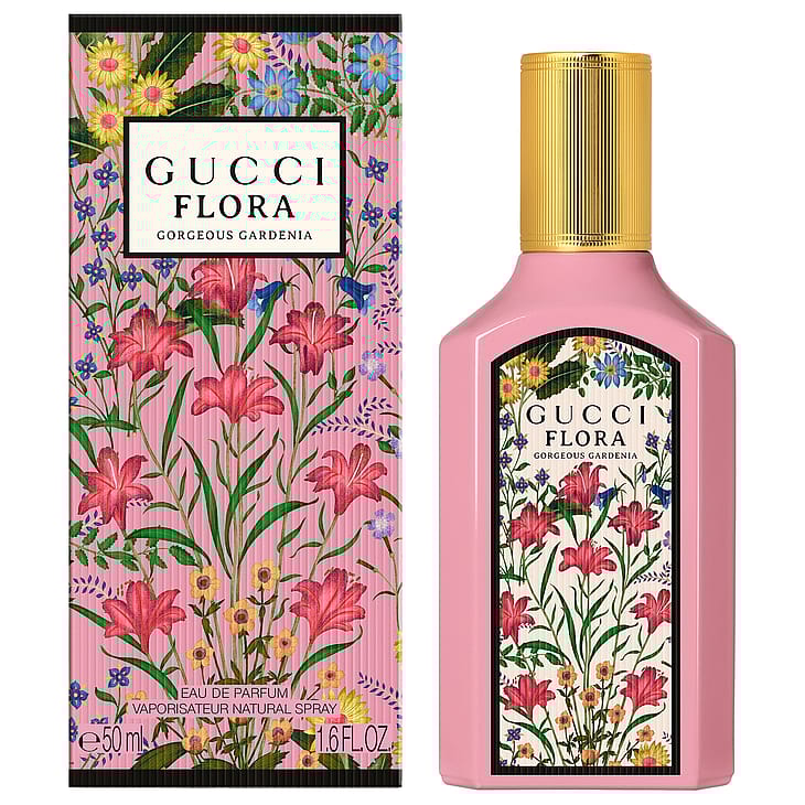 Gucci Flora Gorgeous Gardenia Eau de Parfum on kukkainen ja säteilevä tuoksu täynnä iloa ja mielikuvitusta. Kauneutensa ja myyttisen symboliikkansa vuoksi ihailtu gardenia on tuoksun ytimessä antaen sille modernin, lumoavan ja positiivista energiaa huokuvan luonteen. Tuoksu avautuu raikkaalla päärynänkukka-akordilla, joka tuo kirkkaan ja kuplivan sävyn. Sydämessä puhkeavat kukkaan valkoinen gardenia ja loistava aitojasmiiniabsoluutti, jotka luovat hienostuneen ja aistillisen kukkaistulkinnan. Pohjalla tuoksun viimeistelevät pehmeät fariinisokerin ja patsulin sävyt, jotka lisäävät hienovaraista makeutta ja syvyyttä sekä luovat naisellisen, ilmaisuvoimaisen ja vangitsevan, iholla viipyvän kokonaisuuden. Lakeerattu, vaaleanpunainen, kullansävyisellä korkilla viimeistelty lasipullo huokuu eleganssia ja modernia kauneutta.