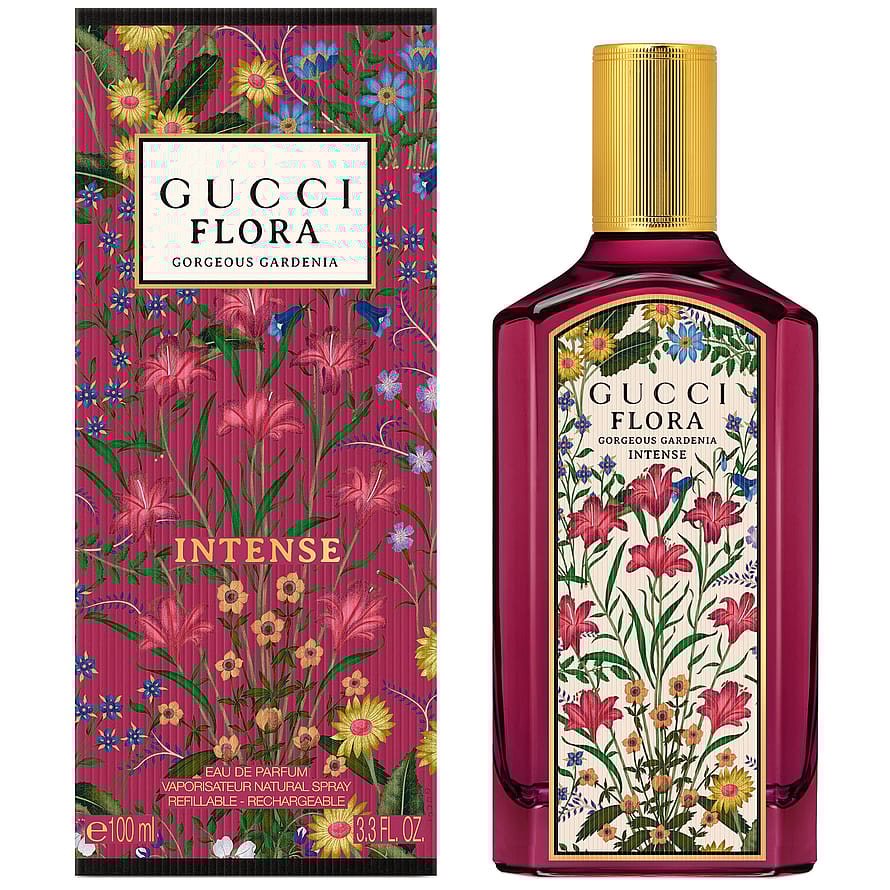 Koe uusi aistillisuuden taso Gucci Flora Gorgeous Gardenia Eau de Parfum Intense -tuoksun myötä – tuoksu, jossa eleganssi kohtaa syvyyden ja intensiteetin hypnoottisessa kukkakokonaisuudessa. Tämä on intensiivisin Flora-parfyymi tähän mennessä – voimakas ja tasapainoinen yhdistelmä eleganssia ja aistikkuutta, täynnä syvyyttä ja hienostuneisuutta. Tuoksu avautuu raikkaasti italialaisella mandariiniessenssillä, joka herättää aistit eloon eloisalla energiallaan. Sydämessä gardenia-akordi ja hedione kietoutuvat yhteen kukkaiseksi, unenomaiseksi ja iloiseksi kokemukseksi. Pohjalla lämmin santelipuu korostaa kukkaista aistikkuutta ja jättää iholle pehmeän, puumaisen hunnun – kuin euforinen kosketus iholla. Ikoninen Flora-pullo hehkuu ylellisessä fuksian sävyssä ja sitä koristaa Guccin tunnusomainen kuosi. Kullanvärinen “Intense”-teksti kuvastaa tuoksun ainutlaatuista syvyyttä ja säteilevää voimaa – viettelevä tuoksu kaikkiin hetkiin.