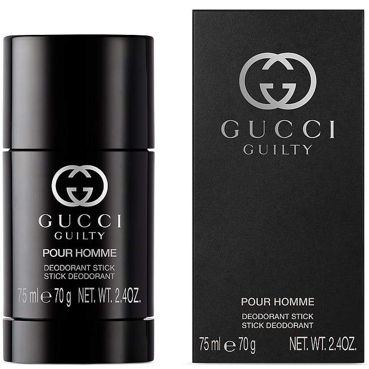 Levitä Gucci Guilty Pour Homme Deodorant Stick -deodoranttipuikkoa suoraan puhtaalle ja kuivalle kainaloiden iholle saadaksesi pitkäkestoista raikkautta.