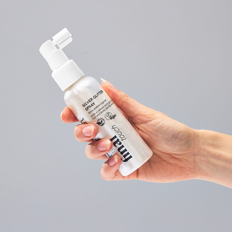 Final Touch™ Silver Glitter Spray saa sinut säihkymään! Tämä kevyt suihke sisältää erittäin hienoa hopeaglitteriä, joka antaa säihkyvän hehkun ja saa sinut loistamaan. Ekologisilla goji-, selja- ja mangouutteilla rikastettu glittersuihke ravitsee ja suojaa ihoa sekä hiuksia jättämättä niitä tahmeiksi.