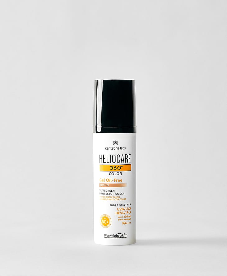 360º Color Oil-free Gel SPF50+ yhdistää meikkivoiteen ja aurinkosuojan. Saatavilla sävyissä Pearl, Beige ja Bronze. Kevyt, helposti levittyvä fluidi sopii erityisesti rasvaiselle ja sekaiholle, jättäen luonnollisen mattapintaisen lopputuloksen. Tuote suojaa tehokkaasti UVA/UVB-säteilyltä, näkyvältä HEV-valolta ja infrapunavalolta. Aurinkosuojakerroin SPF50+ ja PA++++(mitta-asteikko UVA-suojalle). Antioksidanttiset C- ja E-vitamiinit, vihreä tee sekä innovatiivinen raaka-aine saniaisuute suojaavat ihoa auringon haitalliselta säteilyltä. Vegaaninen tuote. öljytön geeli yhdistää meikkivoiteen ja aurinkosuojan Suojaa ihoa antioksidantein, entsyymein ja aurinkosuojalla SPF50+ Vegaaninen tuote