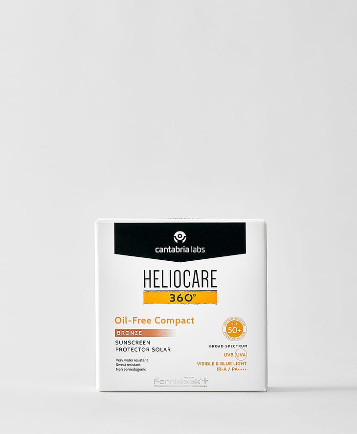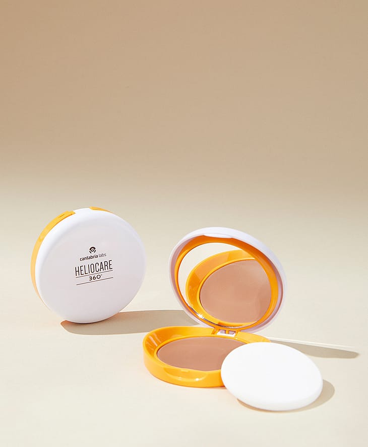 Heliocare 360° Color Cushion Compact SPF 50 -tuotteessa on kevyesti peittävä, meikkivoidetta muistuttava koostumus, ja se on saatavana kolmessa eri sävyssä. Se on täydellinen tuote aurinkosuojan ja meikin paranteluun päivän aikana. Pearl - vaalea, Beige - medium, Bronze - tumma. Levitä aamulla iholle tavallista aurinkosuojavoidetta ja sen jälkeen Gel Oil Free Compactia tuomaan kevyttä peittävyyttä ja sävyä. Levitä uudestaan päivän aikana tarpeen mukaan. Tuloksena on kaunis ja tasainen iho, jossa on luonnollinen hehku. Suojaa ihoa UVA- ja UVB-säteilyn, näkyvän valon (HEV) ja infrapunasäteilyn (IR) haitoilta. Vaikutus perustuu laajaspektrisen, nykyaikaisen aurinkosuodattimen lisäksi ainutlaatuiseen Fernblock-ainesosaan ja muihin innovatiivisiin ainesosiin, jotka tukevat ihon uudistumista. Sopii kaikille ihotyypeille.