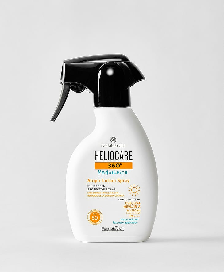 Hypoallergeeninen aurinkosuoja, joka on testattu atooppiselle ja herkälle iholle sekä lapsille sopivaksi. Sisältää arginiinia ja glyseriiniä, jotka kosteuttavat ja auttavat ylläpitämään ihon tervettä suojakerrosta, joka herkässä ja atooppisessa ihossa on usein heikentynyt. Suihkemuodon ja kevyen koostumuksen ansiosta tuotetta on helppo levittää. Heliocaren oma Fernblock®+ -yhdiste, aurinkosuojafiltterit ja korjaavat antioksidantit suojaavat ihoa UVA-, UVB- ja infrapunasäteilyltä sekä näkyvältä valolta. Pediatrisesti ja dermatologisesti testattu. Vedenkestävä. Korkea aurinkosuoja, joka sopii myös lapsilleHypoallergeeninen aurinkosuoja, joka on testattu atooppiselle ja herkälle iholle sopivaksiTodella kevyt, helposti levittyvä ja vedenkestävä koostumus.