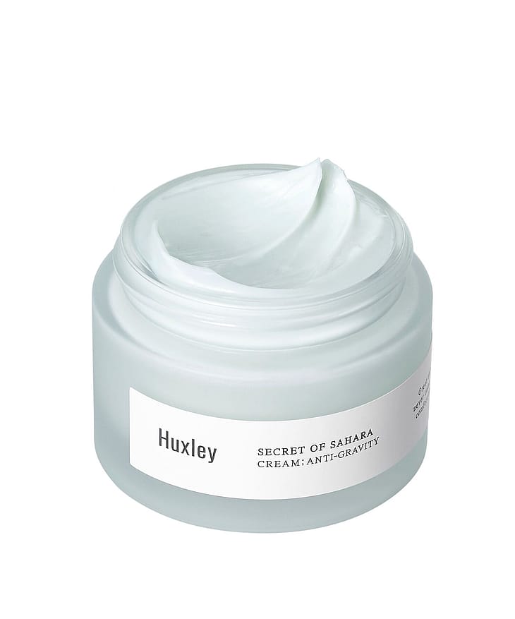 Huxley Cream; Anti-Gravity on anti-age-voide, joka auttaa ehkäisemään ihon ikääntymistä, häivyttämään pieniä juonteita ja tekemään ihosta tasaisemman näköisen. Sisältää viikunakaktuksen siemenöljyä, hyaluronihappoa, soijalesitiiniä, beetaglukaania ja useita kasviperäisiä uutteita, jotka kosteuttavat ihoa ja tarjoavat antioksidanttista suojaa.-Anti-age kosteusvoide-Kaikille ihotyypeille, erityisesti ikääntyvälle iholle-Ravitsee ja tasoittaa ihoa. Tuote on vegaaninen.
