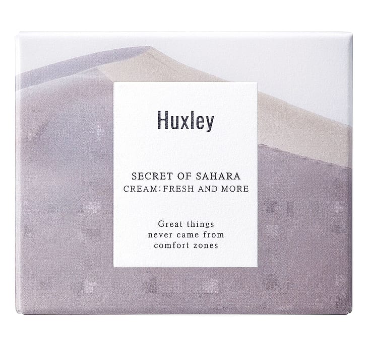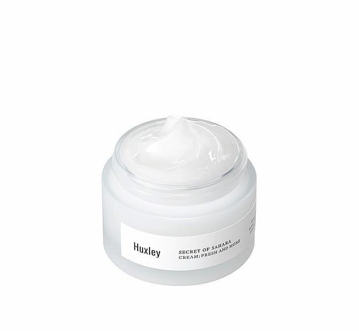 Huxley Cream; Fresh and More on kevyt, raikkaan tunteen tekevä geelivoide, joka lukitsee kosteuden ihoon koko päiväksi jopa äärimmäisen kuivissa olosuhteissa. Voide tasoittaa ihoa ja tekee siitä täyteläisen kosteutetun tekemättä ihosta rasvaisen tuntuista. Sisältää antioksidanttista viikunakaktuksen siemenöljyä ja kaktusuutetta sekä hyaluronihappoa ja keramideja, jotka kosteuttavat ihoa ja estävät kosteuden haihtumista ihosta. Sisältää myös vihannesportulakkauutetta, joka rauhoittaa ja raikastaa ihoa. Tuote on vegaaninen.