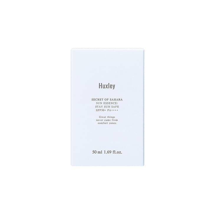 Huxley Sun Essence; Stay Sun Safe on intensiivisesti kosteuttava, suojakertoimen 50+ sisältävä aurinkosuojavoide, joka varjelee ihoa UV-säteiden haitallisilta vaikutuksilta. Sisältää ihon suojakerrosta tehokkaasti vahvistavia, kaktuksesta johdettuja keramideja, kosteuttavaa ja rauhoittavaa kaktusuutetta, sekä antioksidanttipitoisia vitamiineja ja rasvahappoja sisältävää kaktuksen siemenöljyä, joka suojaa ja kosteuttaa ihoa pitkäaikaisesti. Kevyt ja pehmeä hoitonesteen kaltainen koostumus imeytyy nopeasti ihoon murustumatta tai jättämättä iholle valkoista kajoa. Voide antaa virkistävän tunteen ja jättää iholle sileän, ei-tahmaisen lopputuloksen. Kun aurinkosuojan levittää iholle ennen meikkivoidetta, se toimii myös kosteuttavana meikinpohjustajana, joka auttaa meikkiä pysymään paikoillaan pidempään. Sopii kaikille ihotyypeille.