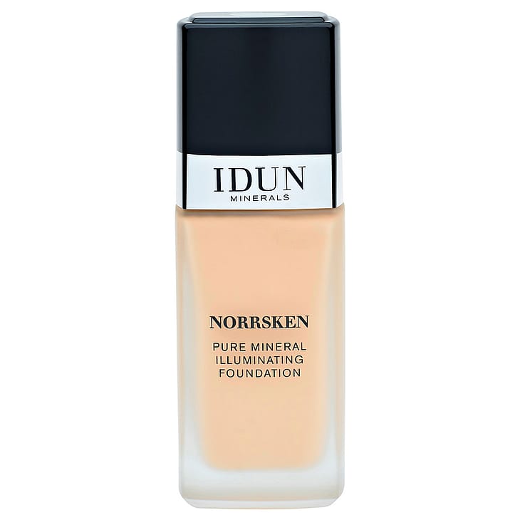 Heleyttävä nestemäinen mineraalimeikkivoide, joka sulautuu ihoon antaen tasaisen ja luonnollisen viimeistelyn sekä kevyen silauksen. IDUN Minerals Liquid Mineral Foundation Norrsken koostuu puhdistetuista mineraaleista, jotka antavat kevyen tai keskivahvan peittävyyden, joka on rikastettu antioksidanttisella E-vitamiinilla ja pohjoismaisella puolukansiemenöljyllä, jotka kosteuttavat, hoitavat ja suojaavat ihoa.