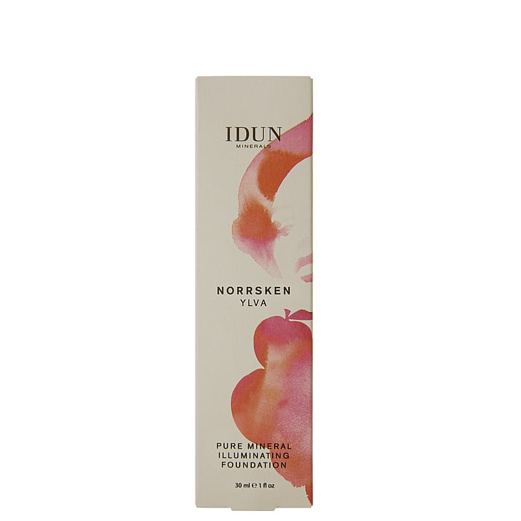 Heleyttävä nestemäinen mineraalimeikkivoide, joka sulautuu ihoon antaen tasaisen ja luonnollisen viimeistelyn sekä kevyen silauksen. IDUN Minerals Liquid Mineral Foundation Norrsken koostuu puhdistetuista mineraaleista, jotka antavat kevyen tai keskivahvan peittävyyden, joka on rikastettu antioksidanttisella E-vitamiinilla ja pohjoismaisella puolukansiemenöljyllä, jotka kosteuttavat, hoitavat ja suojaavat ihoa.