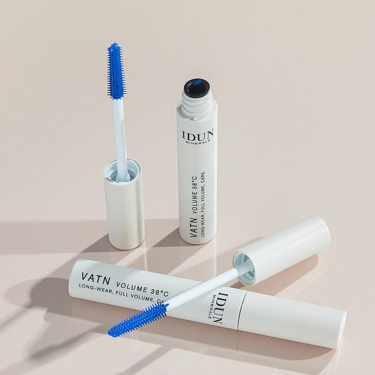 IDUN Minerals Mascara Vatn Volume 38°C vedenkestävä ripsiväri kestää säätä mutta on helppo pestä pois lämpimällä 38-asteisella vedellä. Pestessä väri lähtee ripsistä pieninä paloina, joten se on helppo ja vaivaton poistaa. Hoitava ripsiväri saa upean voidemaisen koostumuksensa sheavoista, joka myös auttaa kosteuttaman ja hoitamaan ripsiä. Lisäksi karnauba vaha antaa ripsille volyymia ja pituutta ja glyseroli kosteuttaa ripsiä.