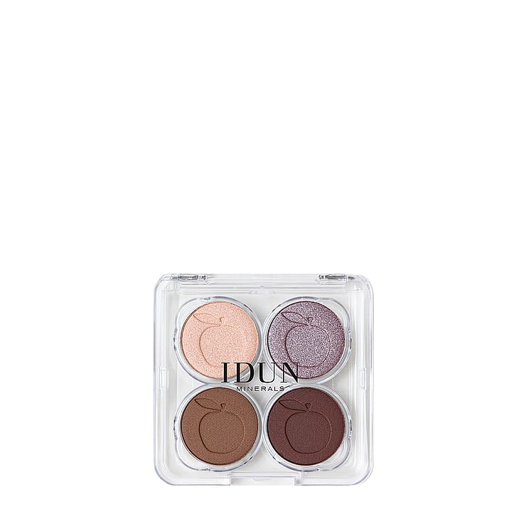 Huolella valikoitujen luomivärien mallisto mahdollistaa kaiken pehmeistä, hienostuneista efekteistä värikkäämpiin ja intensiivisempiin lookeihin. IDUN Minerals Eyeshadow Palette sisältää neljä valikoitua runsaspigmenttistä luomiväriä, jotka täydentävät toisiaan ja sopivat kaikille ihonsävyille. Koostumus sisältää hyvn puhtaita mineraaleja. Voidemainen puuterikoostumus antaa intensiivisen vaikutuksen ja pitkäkestoisen tuloksen.