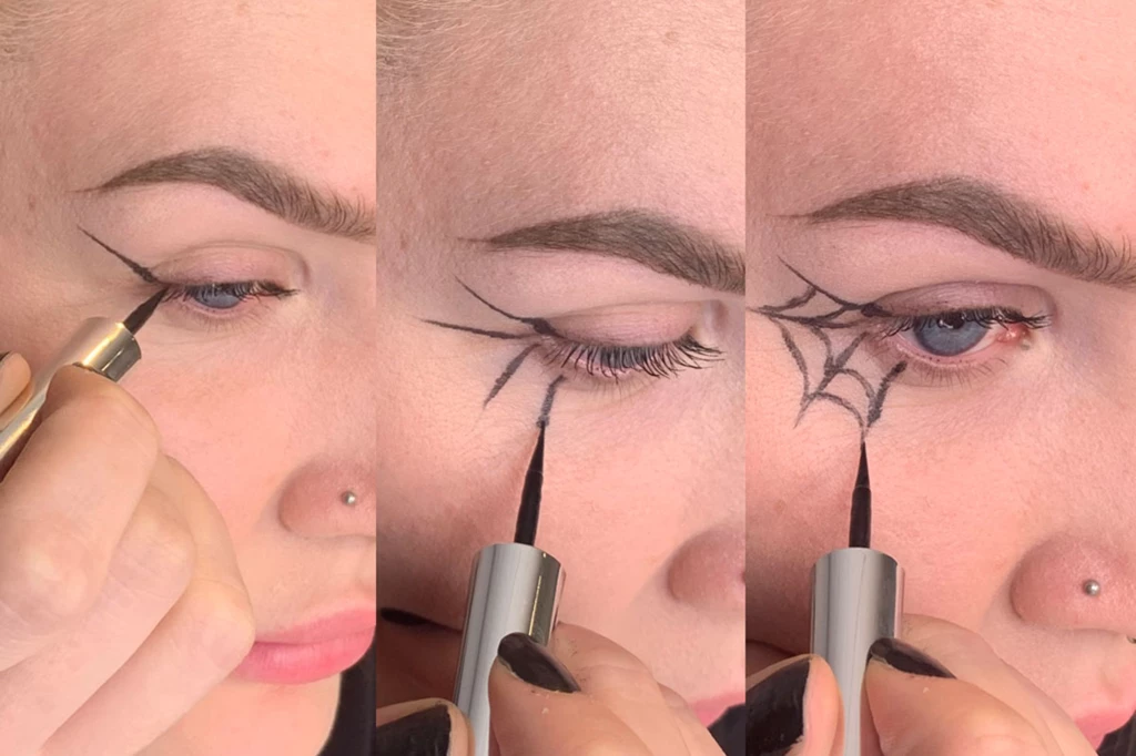 Hämähäkinseitit sopivat moniin halloween-lookeihin, ja ne on helppo luoda eyelinerilla. Näin piirrät ammattimaisen hämähäkinseitin silmiesi viereen.