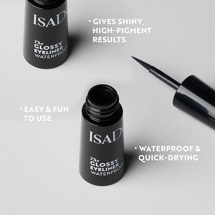 Glossy Eyeliner on nestemäinen eyeliner, jolla saat todella kiiltävän ja näyttävän lopputuloksen. Eyelinerin rikas koostumus takaa täydellisen pidon ja intensiivisen värikylläisyyden. Joustavan ja tarkan siveltimen avulla voit tehdä hienon ohuen tai leveän ja näyttävän rajauksen. Kuivuu nopeasti ja on vedenkestävä.