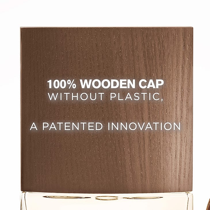 Eau de Toilette Intense L'Eau d'Issey pour Homme Vétiver -pullo on valmistettu 20 % PCR-lasista, sen korkki on muoviton ja valmistettu kokonaan luonnollisesta puusta.