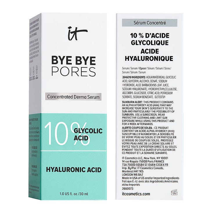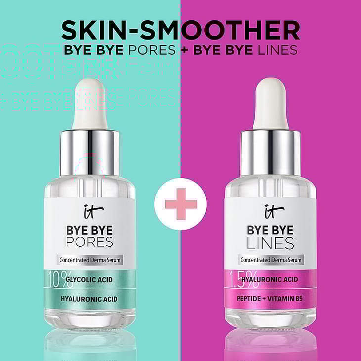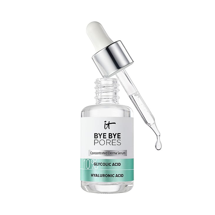 IT Cosmetics Bye Bye Pores Concentrated Derma Serum kuorii ihoa antaen erittäin sileän lopputuloksen! 10 % glykolihappoa sisältävä vegaaninen koostumus auttaa vähentämään ihohuokosten näkyvyyttä vain yhdessä viikossa. Lisäksi se sisältää hyaluronihappoa, joka auttaa kosteuttamaan ihoa ja antamaan sille joustavan tunteen. Tämä glykolihapposeerumi on kehitetty yhteistyössä plastiikkakirurgien ja ihotautilääkärien kanssa ja se sopii kaikille ihotyypeille – myös herkälle iholle. Pehmeämpi & sileämpi iho on täällä!