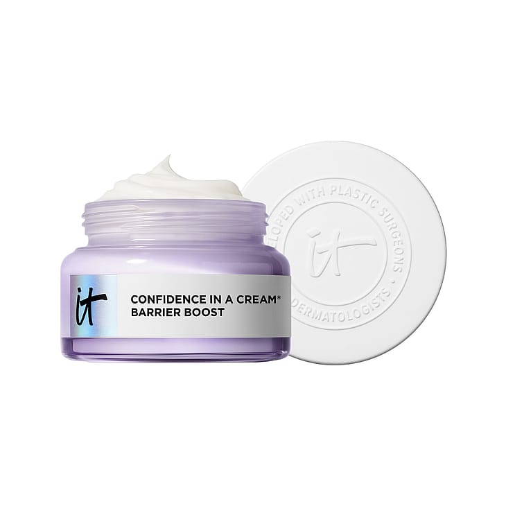 Olipa kyse kroonisesta kuivuudesta, liiallisesta retinolin käytöstä tai laserhoidon jälkeen*, IT huolehtii ihosi suojamuurista. Erittäin hellävarainen ja sopii herkälle iholle, Confidence in a Cream Barrier Boost tuntuu kevyeltä kosteusvoiteelta mutta antaa palauttavaa tehoa kuin täyteläinen voide — sileämpi ja pehmeämpi iho jo yhdellä käyttökerralla**! Ihosi suojamuurin sankari työskentelee ylitöitä (100 tuntia tarkalleen!) pelastaakseen ihon heikentyneen suojamuurin merkeiltä: kuivuus, herkkä iho, epätasainen ihonsävy, epätasainen ihon pinta ja kasvojen punoitus.