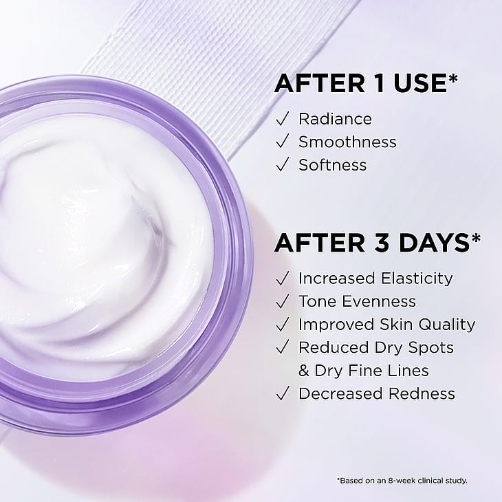 • 3 päivän jälkeen: Näkyvästi häivyttää juonteet ja vaikuttaa ihon kimmoisuuteen**