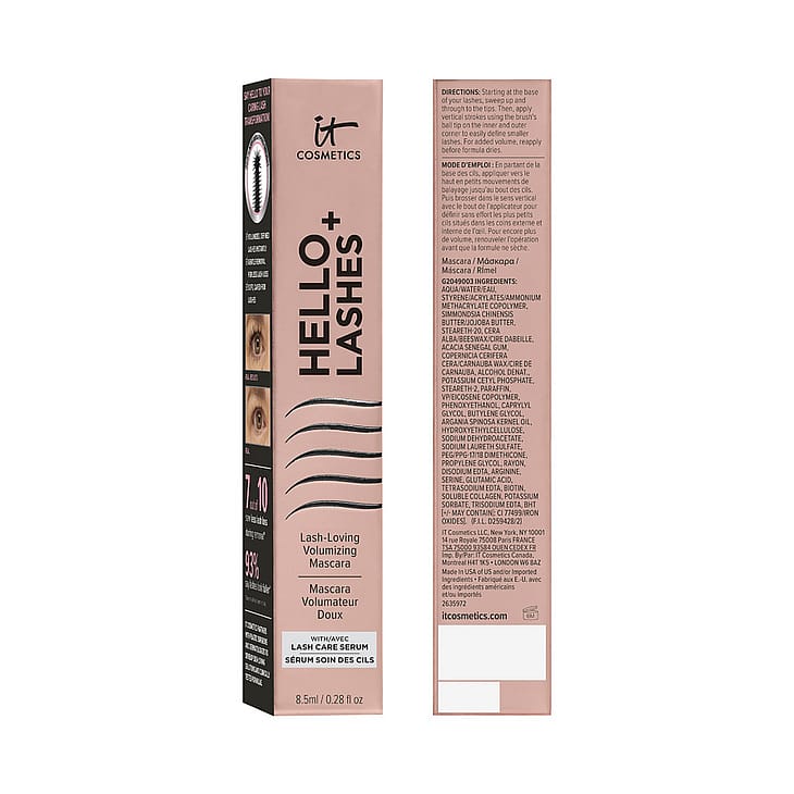 Sano HELLO tuuheille, erotelluille ripsille sekä Hello Lashes+Lash-Loving Volumizing Mascara-maskaralle! Ripsiväri sisältää biotiinia, argan- ja jojobaöljyä. Se tekee ripsistä täyteläisemmän näköiset 360° Lash-Wrapping Brush -siveltimellä. Koe silmiä avaava volyymi yhdellä vedolla!