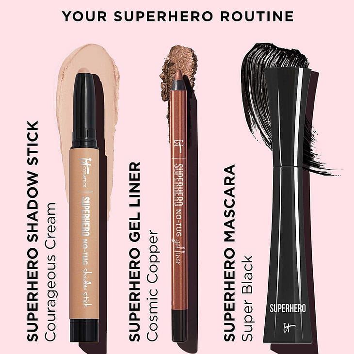 Superhero No-Tug Eyeshadow Sticks -luomiväripuikoissa on kaikki ne ominaisuudet, mitä rakastat kestävissä luomiväreissä. Nyt helppokäyttöisessä voidemaisessa luomiväripuikossa! Ainutlaatuinen No-Tug Technology™ -tekniikka ja helposti häivytettävä luomiväripuikko levittyvät helposti eikä rasita herkkää silmänympärysihoa. Saatavana matta- ja helmiäisvärinä. Jokainen 12 upeasta sävystä on erittäin hyvin kerrostettavissa, joten voit luoda rajattomasti lookkeja! Lisäksi sen koostumus on täysin erilainen, joten sinun ei tarvitse murehtia siitä, että se kertyy luomivakoon. Saat todellakin upeimmat silmät yhdellä vedolla! 5 superetua! Super Smooth Glide Super Blendable Super Creaseless Super Buildable Super All-Day Wear