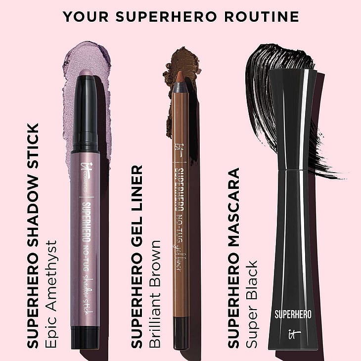 Superhero No-Tug Eyeshadow Sticks -luomiväripuikoissa on kaikki ne ominaisuudet, mitä rakastat kestävissä luomiväreissä. Nyt helppokäyttöisessä voidemaisessa luomiväripuikossa! Ainutlaatuinen No-Tug Technology™ -tekniikka ja helposti häivytettävä luomiväripuikko levittyvät helposti eikä rasita herkkää silmänympärysihoa. Saatavana matta- ja helmiäisvärinä. Jokainen 12 upeasta sävystä on erittäin hyvin kerrostettavissa, joten voit luoda rajattomasti lookkeja! Lisäksi sen koostumus on täysin erilainen, joten sinun ei tarvitse murehtia siitä, että se kertyy luomivakoon. Saat todellakin upeimmat silmät yhdellä vedolla! 5 superetua! Super Smooth Glide Super Blendable Super Creaseless Super Buildable Super All-Day Wear