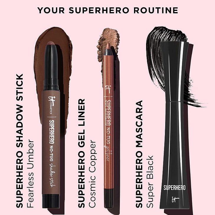 Superhero No-Tug Eyeshadow Sticks -luomiväripuikoissa on kaikki ne ominaisuudet, mitä rakastat kestävissä luomiväreissä. Nyt helppokäyttöisessä voidemaisessa luomiväripuikossa! Ainutlaatuinen No-Tug Technology™ -tekniikka ja helposti häivytettävä luomiväripuikko levittyvät helposti eikä rasita herkkää silmänympärysihoa. Saatavana matta- ja helmiäisvärinä. Jokainen 12 upeasta sävystä on erittäin hyvin kerrostettavissa, joten voit luoda rajattomasti lookkeja! Lisäksi sen koostumus on täysin erilainen, joten sinun ei tarvitse murehtia siitä, että se kertyy luomivakoon. Saat todellakin upeimmat silmät yhdellä vedolla! 5 superetua! Super Smooth Glide Super Blendable Super Creaseless Super Buildable Super All-Day Wear