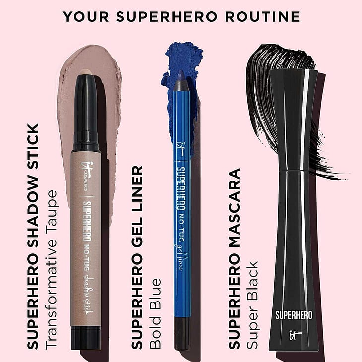 Superhero No-Tug Eyeshadow Sticks -luomiväripuikoissa on kaikki ne ominaisuudet, mitä rakastat kestävissä luomiväreissä. Nyt helppokäyttöisessä voidemaisessa luomiväripuikossa! Ainutlaatuinen No-Tug Technology™ -tekniikka ja helposti häivytettävä luomiväripuikko levittyvät helposti eikä rasita herkkää silmänympärysihoa. Saatavana matta- ja helmiäisvärinä. Jokainen 12 upeasta sävystä on erittäin hyvin kerrostettavissa, joten voit luoda rajattomasti lookkeja! Lisäksi sen koostumus on täysin erilainen, joten sinun ei tarvitse murehtia siitä, että se kertyy luomivakoon. Saat todellakin upeimmat silmät yhdellä vedolla! 5 superetua! Super Smooth Glide Super Blendable Super Creaseless Super Buildable Super All-Day Wear