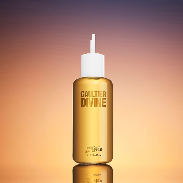 Divine Eau de Parfum on uudelleentäytettävä, joten voit nauttia jumalallisesta kukkaistuoksusta puhtaalla omallatunnolla. Ikonista pulloa voidaan käyttää uudelleen ja uudelleen (50 ja 100 ml:n koossa). Pisaraakaan ylellisestä Eau de Parfumista ei mene hukkaan, koska älykäs täyttöjärjestelmä pysähtyy automaattisesti. Käyttämällä pullon uudelleen ajattelet planeettaamme säästämällä 52 % lasia ja 66 % metallia*. Vastuullisuus on Jean Paul Gaultierille tärkeää, ja hän toivoo, että nautit tästä kestävästä kukkaistuoksusta kaikkialla.
