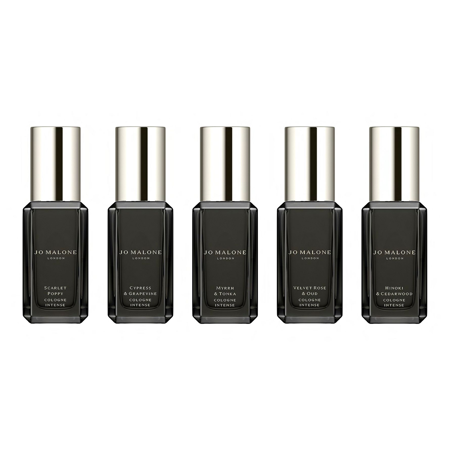 Cologne Intense Collection on lahjapakkaus, joka sisältää viisi Jo Malone Londonin tuoksua matkakoossa (9 ml), mukana mm. Cypress & Grapevine, Myrrh & Tonka ja Scarlet Poppy. Tuoksut on valittu erityisesti niin, että niitä voi käyttää sekä sellaisenaan että yhdistellä keskenään. Täydellinen lahja, kun haluat yllättää läheisesi kauniisti tuoksuvalla lahjalla – tai hemmotella itseäsi ylellisesti.