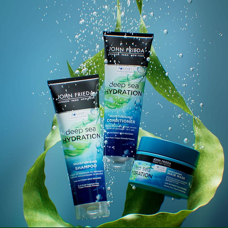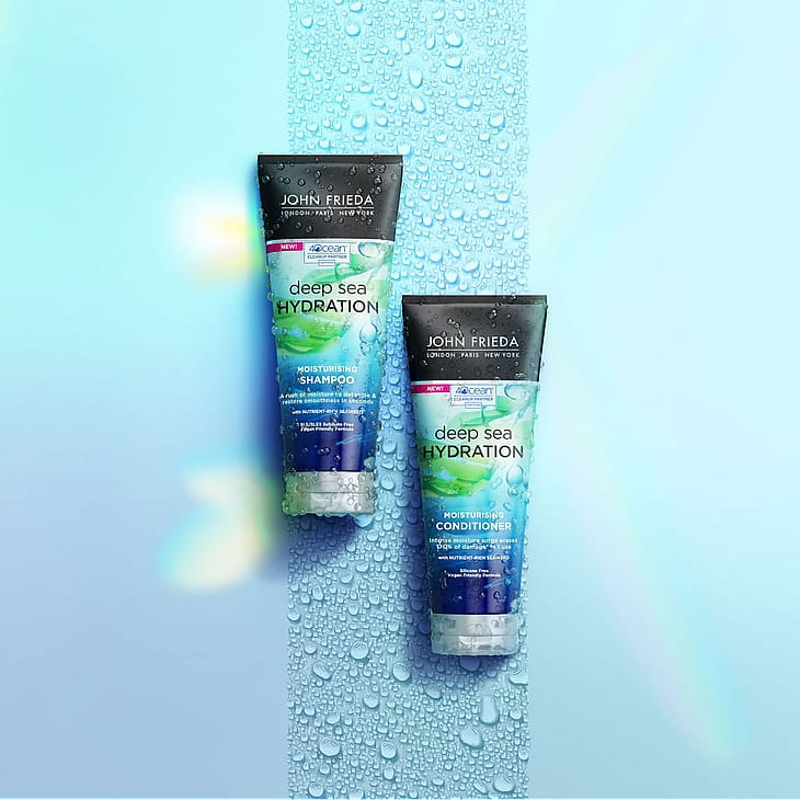 Runsaasti kosteuttava shampoo palauttaa välittömästi silkkisen sileyden ja pehmeyden kuiville, karheille hiuksille. Hiukset saavat sukeltaa merimaailman kosteuttavaan vaikutukseen ravitsevan merilevän ansiosta. Hellävarainen, SLS/SLES sulfaatiton koostumus antaa hiuksille ravitsevaa kosteutta ja helpottaa kammattavuutta. Tuloksena silkkiset, sileät, pehmeät hiukset, joita on ihana käsitellä. Vegaaninen - Sulfaatiton. 4OCEAN KUMPPANUUS ympäristön hyväksi. John Frieda Deep Sea Hydration -tuotelinja on yhteistyössä 4ocean-organisaation kanssa taistellakseen merten muovikriisiä vastaan. 4ocean auttaa vähentämään meriin päätyvää muovijätettä.