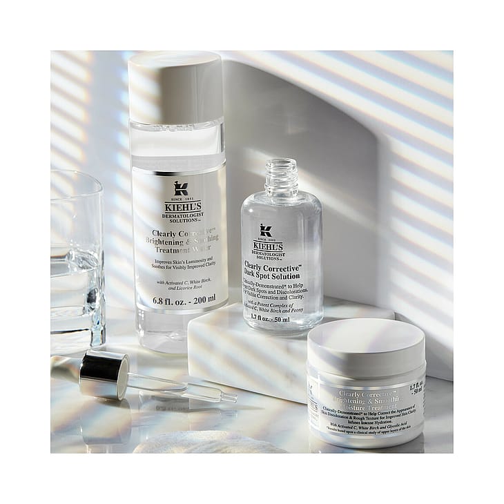 Kiehl’s esittelee ylpeänä koostumuksen, joka kirkastaa ihoa vähentämällä esimerkiksi auringossa oleskelusta johtuvia pigmenttimuutoksia. Hoidettavan ihoalueen sävy paranee näkyvästi kahdeksan viikon aikana. Kiehl’s Clearly Corrective Dark Spot Solution sisältää Activated C -ainesosaa. Aktiivisen koostumuksen tulokset ovat selkeitä: pigmenttimuutosten näkyvä väheneminen ja kirkkaampi ihonsävy.