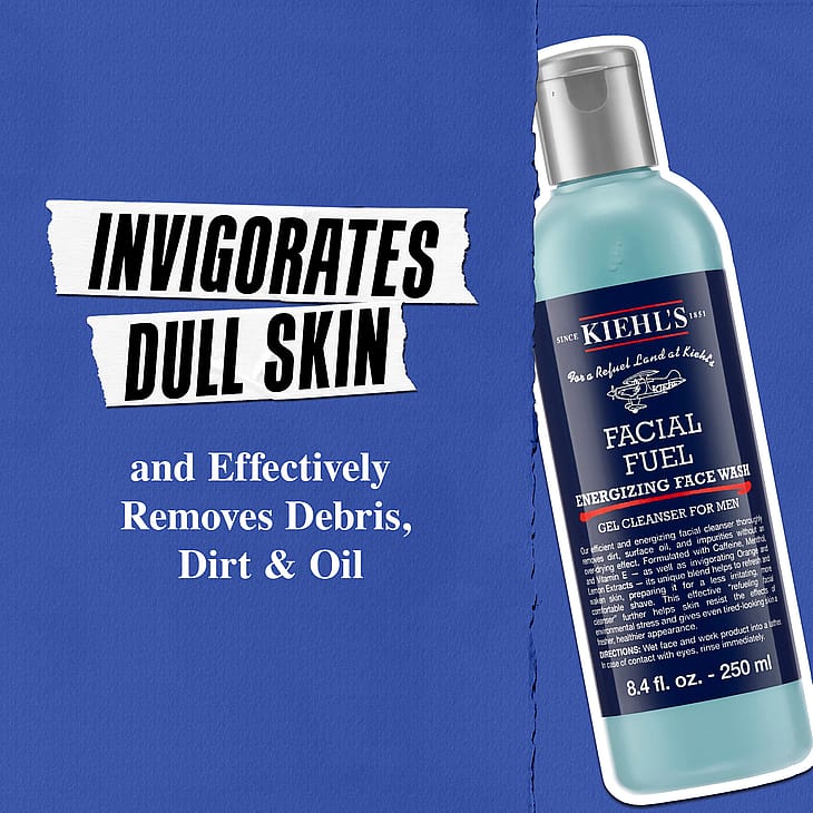Kiehl's Facial Fuel Energizing Face Wash For Men. Tehokkaasti stimuloiva kasvojenpuhdistusaine auttaa suojaamaan ihoa ulkoisilta vaikutuksilta ja antaa myös samealle ja väsyneelle iholle raikkaamman ja terveemmän ulkonäön.