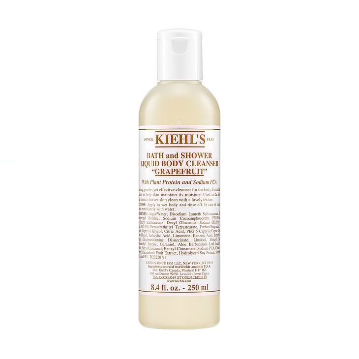 Kiehl's Grapefruit Liquid Body Cleanser. Virkistävä vartalosaippua, joka tuoksuu greipiltä. Mieto mutta tehokas. Sisältää kosteuttavia kasviuutteita.