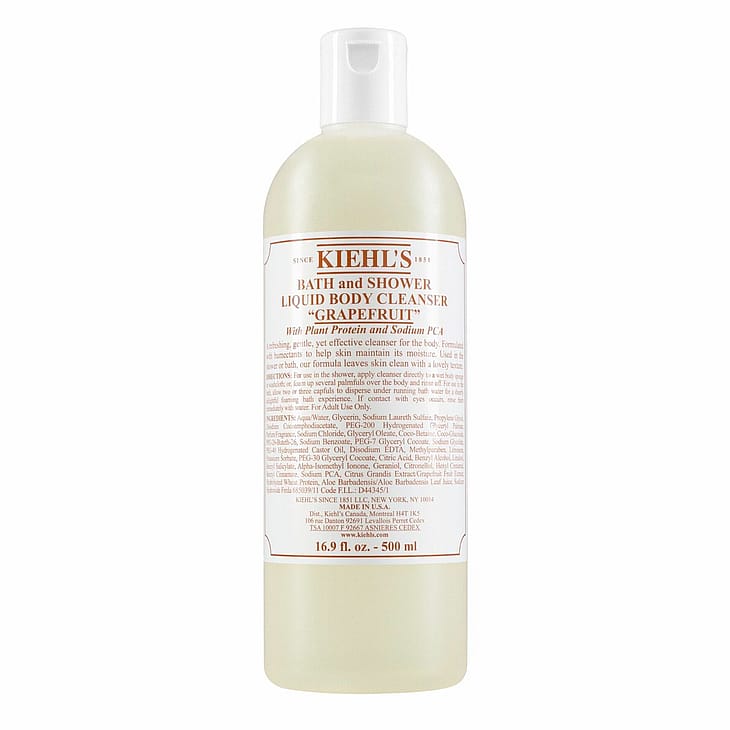 Kiehl's Grapefruit Liquid Body Cleanser. Virkistävä vartalosaippua, joka tuoksuu greipiltä. Mieto mutta tehokas. Sisältää kosteuttavia kasviuutteita.