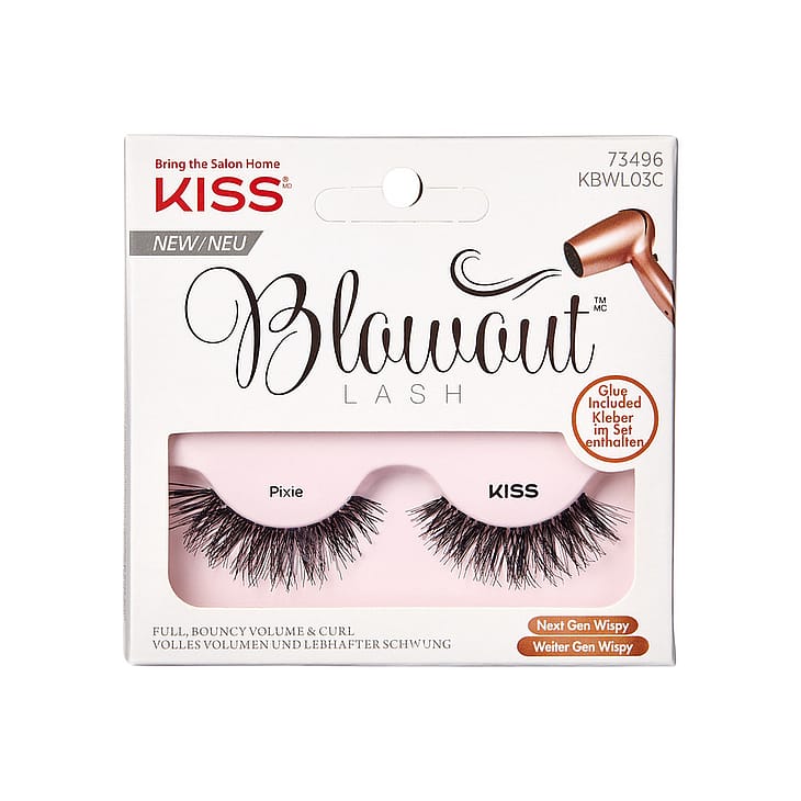 Kiss Blowout -irtoripset on valmistettu korkealaatuisesta luonnonkarvasta. Ripset on helppo muotoilla ja niiden kiinnityskohta on erittäin kapea, joten ne tuntuvat todella luonnollisilta. Irtoripset on käsitelty hiustenkuivaajalla, joten ne ovat tuuheat ja höyhenenkevyet.