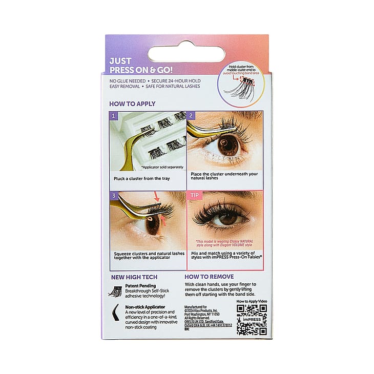 Cosmopolitanin vuoden 2024 Holy Grail -kauneuspalkinnon voittaja "Parhaat tekoripset" ja Bella-lehden kauneuspalkinnon "Best in Makeup - Lashes" -palkinnon voittaja. One Step NO GLUE tekoripset ainutlaatuisella itseliimautuvalla teknologialla, joka kiinnittyy välittömästi ja kestää jopa 24 tuntia vahingoittamatta luonnollisia ripsiä Aseta ripset oikeiden ripsien alle, jotta nauhat jäävät näkymättömiksi ja ulkonäkö on täydellinen. Luo täydellinen ripsien ilme IMPRESS-ripsillämme
